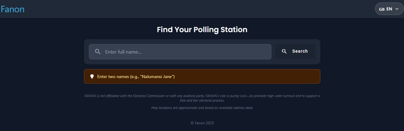 According to information displayed on the site, Fanon is not affiliated with the Electoral Commission (EC) or any political party and describes its role as “purely civic—to promote high voter turnout and to support a free and fair electoral process.”