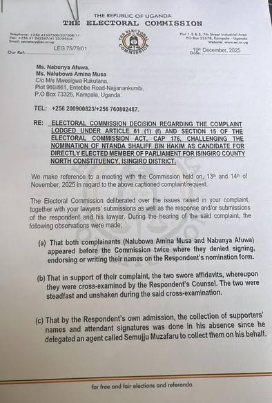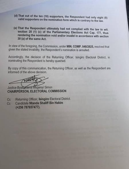 Kyagulanyi further alleged that two individuals who had signed Ntanda’s nomination papers were abducted and forced to recant their signatures, creating grounds for the candidate’s removal from the race.