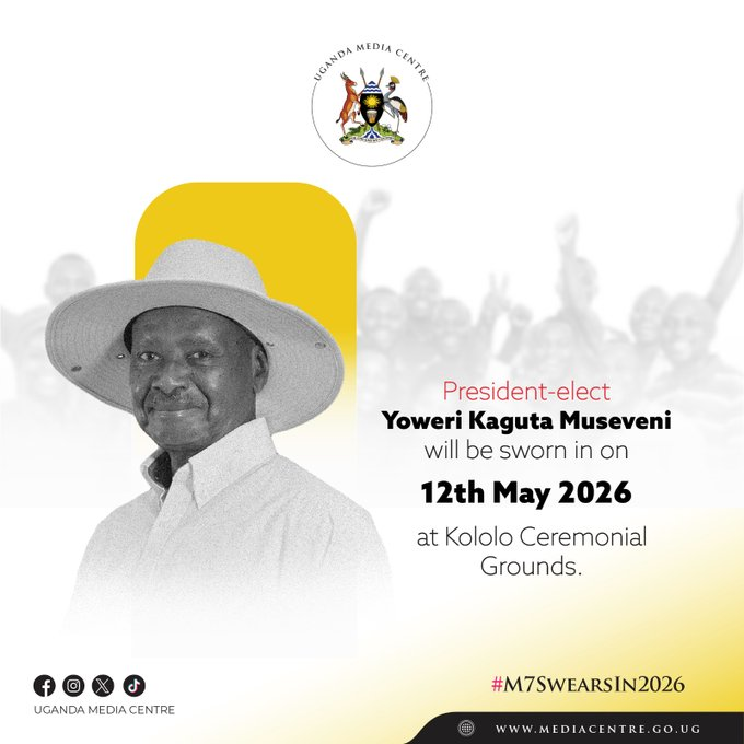 Kampala, Uganda — Yoweri Kaguta Museveni is set to be sworn in for a seventh term on May 12, 2026, at Kololo Ceremonial Grounds, following his victory in the January general election.